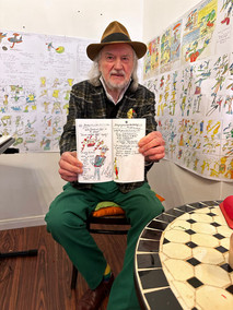 Der Dadaist Berlershaut stellt im Dada-Künstlercafé in Berlin-Charlottenburg sein neuestes Dada-Werk vor: